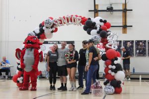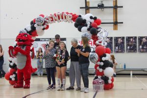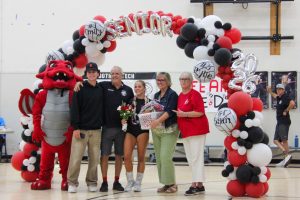Audience members of Senior Night for girls volleyball on Oct. 7, 2025, celebrate senior Rylie Hannah ‘26 as she is surrounded by her family. As a libero, she has made many great defensive plays and dives throughout her four years on the team.