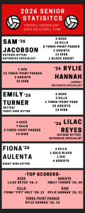 Lilac Reyes ‘26 beams, standing next to her family and Foothill Tech’s mascot, as her teammates and friends cheer her on for the time and effort she put into volleyball. Her dedication and kindness have inspired students on and off the court.