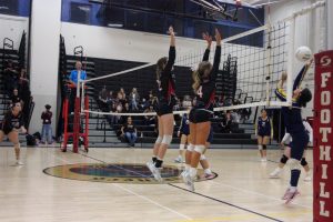 Emily Turner ‘26 (number 4) and Avril Acosta Garcia ‘27 (number 2) make the quick decision to jump and block the ball played by Santa Clara’s team. As the night went on, Turner and Garcia both proved to be very valuable to the team offensively and defensively, making great saves and kills.